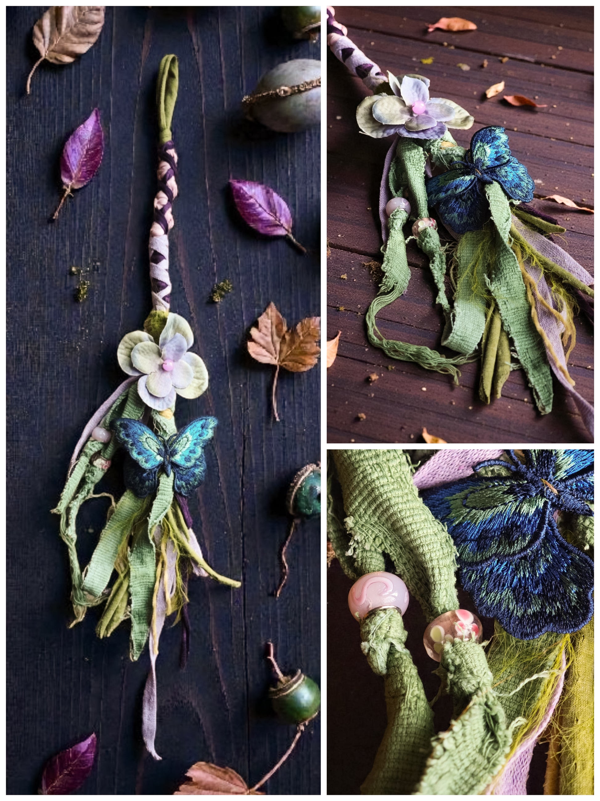 Dieser Dreadwrap ist ein kunstvoll gestaltetes Statement für Sinnlichkeit, Naturverbundenheit und höchste Detailverliebtheit. Idunn vereint hochwertige, weich fallende Naturstoffe mit einer textilen Blüte, filigranen Stofflagen und einem kunstvoll gestickten Schmetterling als zentrales Highlight.