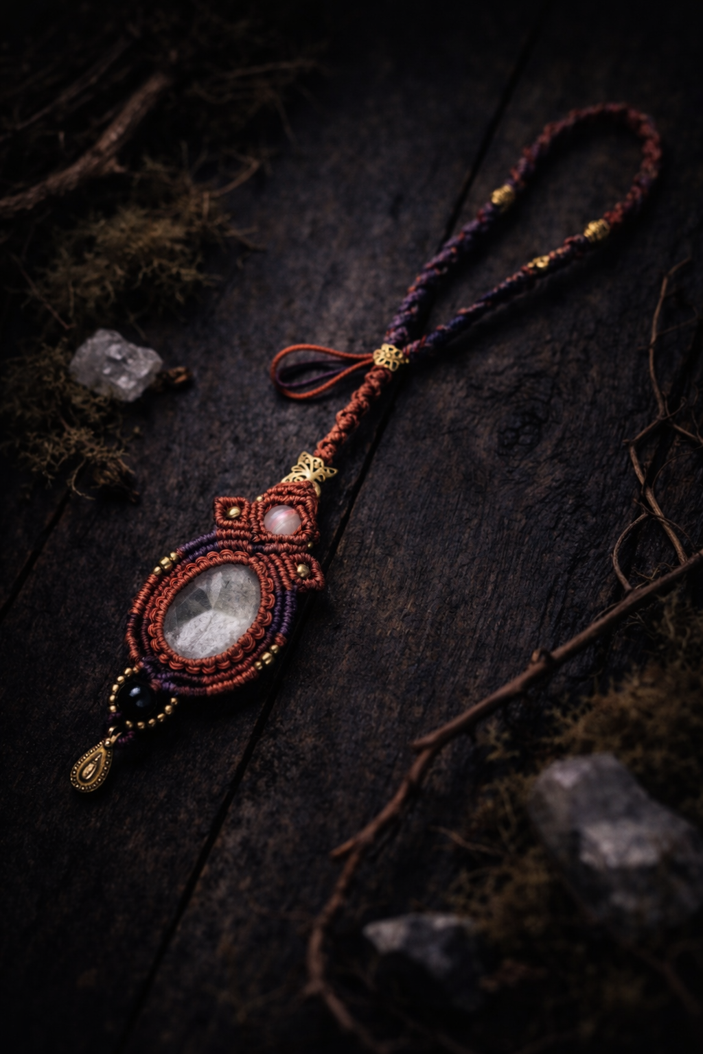 Edelstein Makramee Dreadwrap „Papilio Noctiluna“ | mit großem Mondstein und Onyx