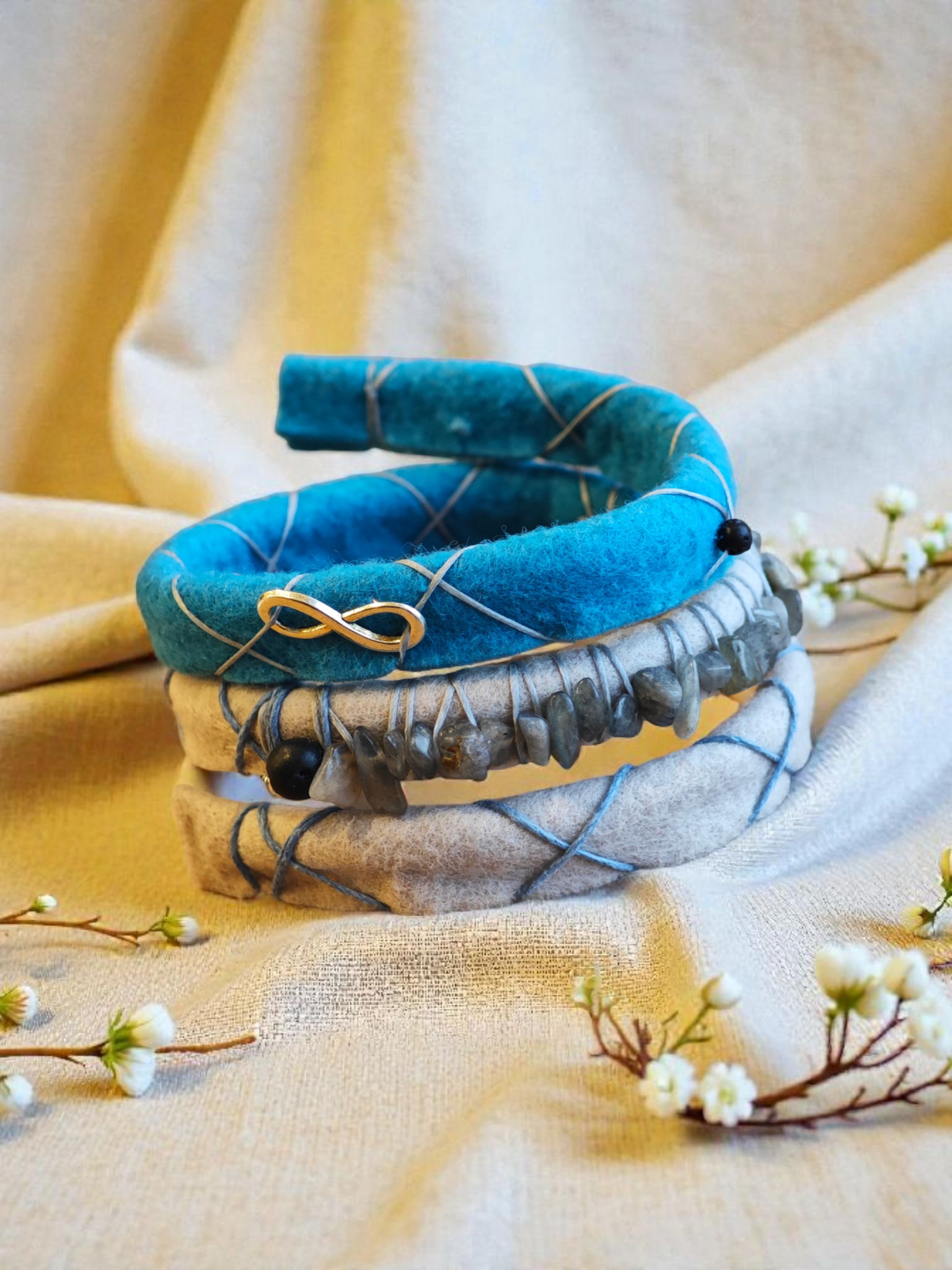 Diese Premium Dread Spirale trägt den geheimnisvollen Schimmer des Labradorits – ein Stein der Transformation, des Schutzes und der inneren Stärke. Seine irisierenden Reflexe erinnern daran, dass in jedem Wandel ein neues Licht verborgen liegt. In Verbindung mit Dreads wirkt der Labradorit wie ein energetischer Schutzmantel, der Fremdeinflüsse fernhält und die eigene Intuition stärkt. Die feinen Metallakzente verleihen der Spirale eine stille Eleganz, die sich mühelos in deine Dreads einfügt – kraftvoll, ruhig und tief zugleich.
