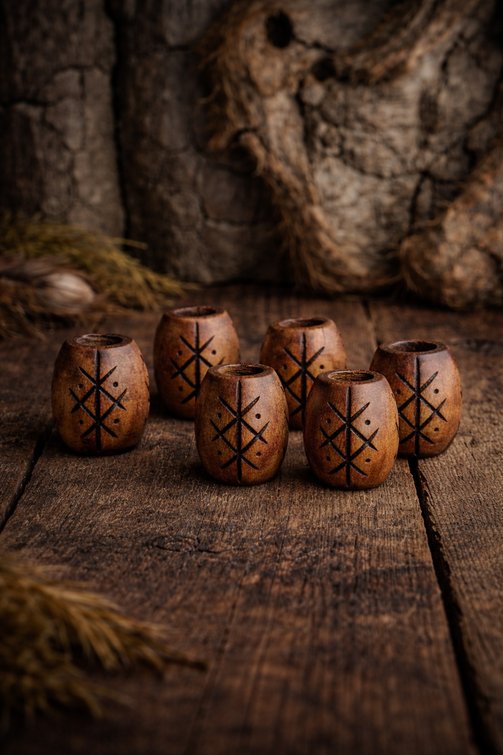 Ein kleines, stilles Kraftsymbol, das euch in euren Dreads begleitet – wie ein schützender Talisman aus Holz, verwurzelt in alten Zeiten und bereit, neue Wege mit euch zu gehen.